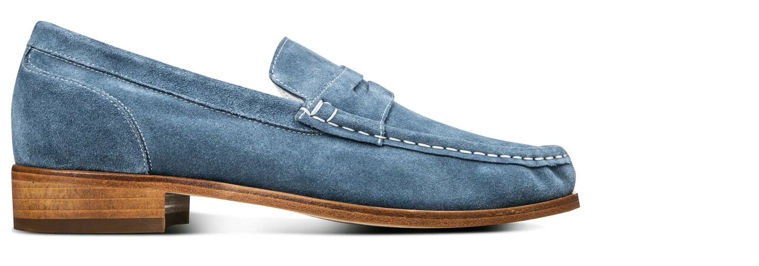 The elegance of the new elevator loafers “Perù” given by their upper in blue suede calf leather, makes them the trendiest of the season. The meticolous efforts of the GuidoMaggi artisans and designers, together with the traditional craftsmanship of the leather made in Italy, allows the foot to breathe, offering unparalleled comfort.