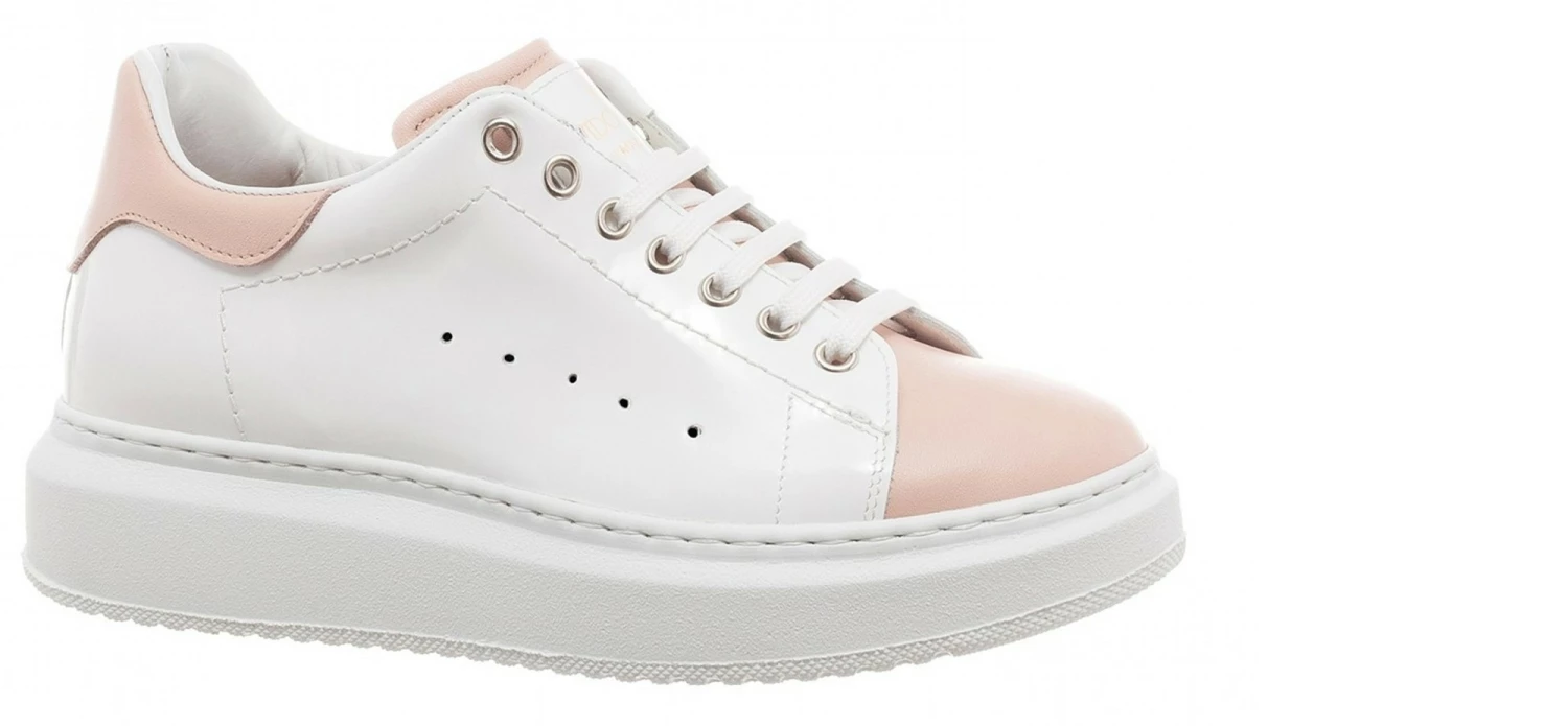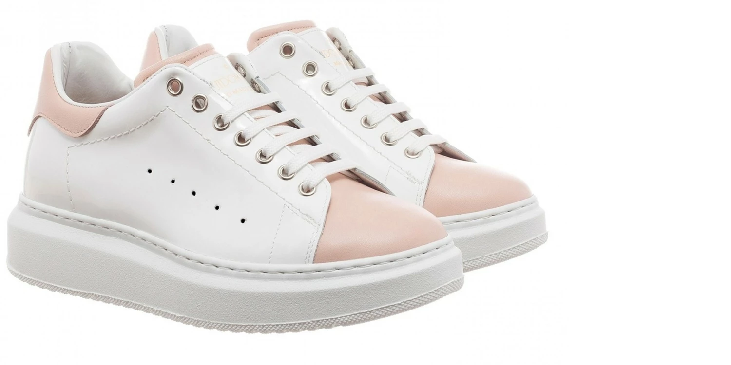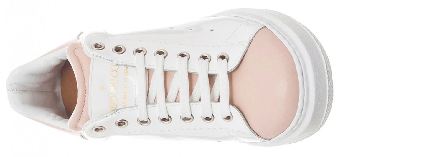 The new “Pink Beach” sneakers by GuidoMaggi stand out for their particular upper in glossy white full grain leather, made unique by the details of a vivacious pink shade.