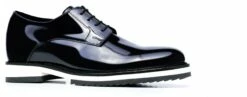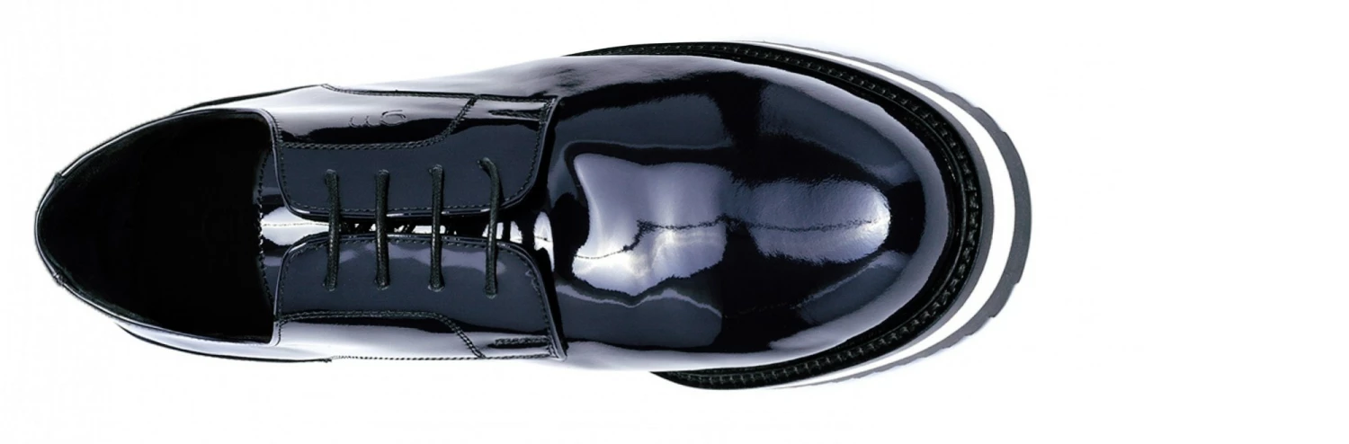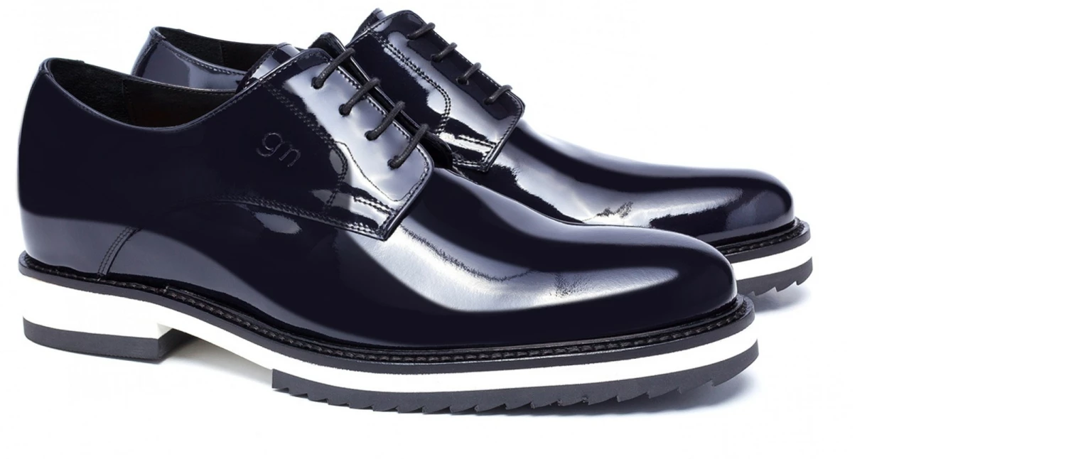Refined and sophisticated, the new GuidoMaggi “Rue de Rivoli” dress shoes stand out immediately for their gleam and their patent leather dark blue nuance given by the soft upper in calfskin leather. The lightweight antislip rubber sole, handcrafted, white with accurate black details, will make an impression with every step.