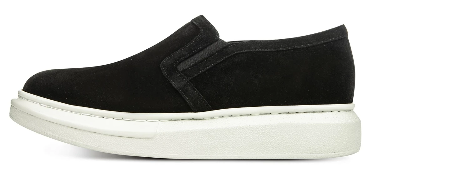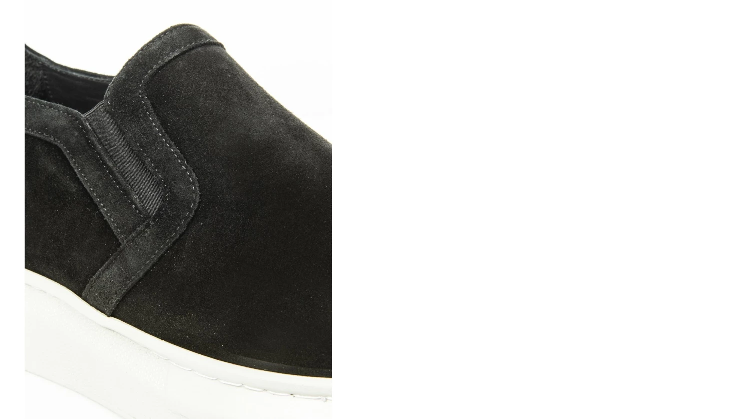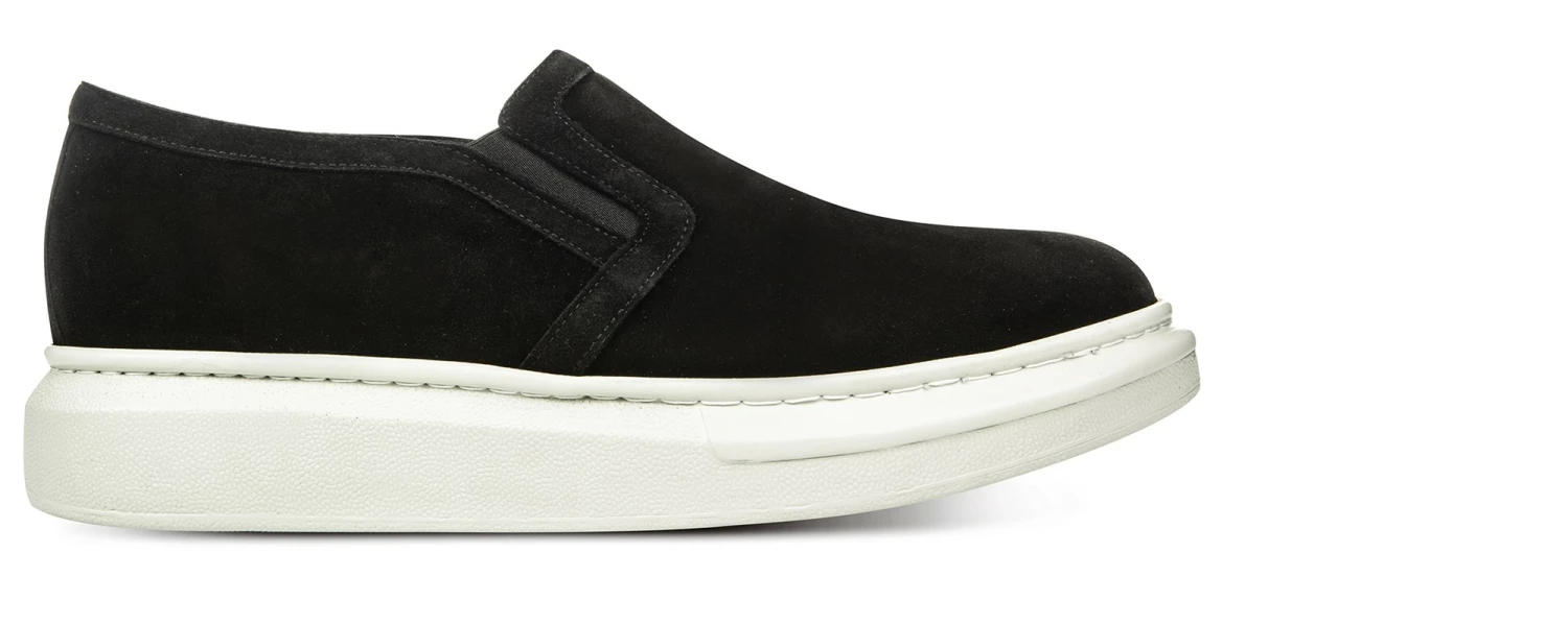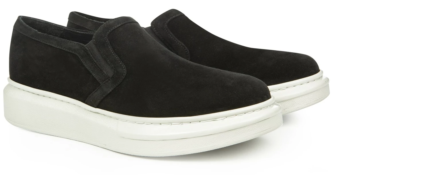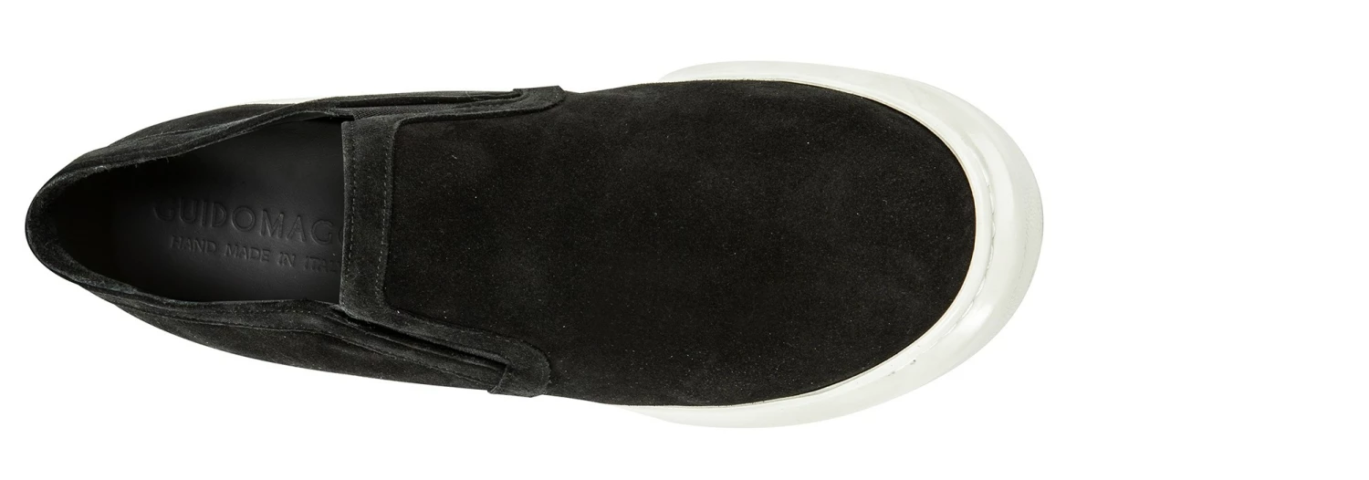 Handcrafted elevator slip-on in black suede and grey sole in ultralight rubber.