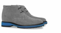 Elevator ankle boots made of gray suede calf leather and comfortable black/blue two-tone rubber sole that gives a trendy and modern style.