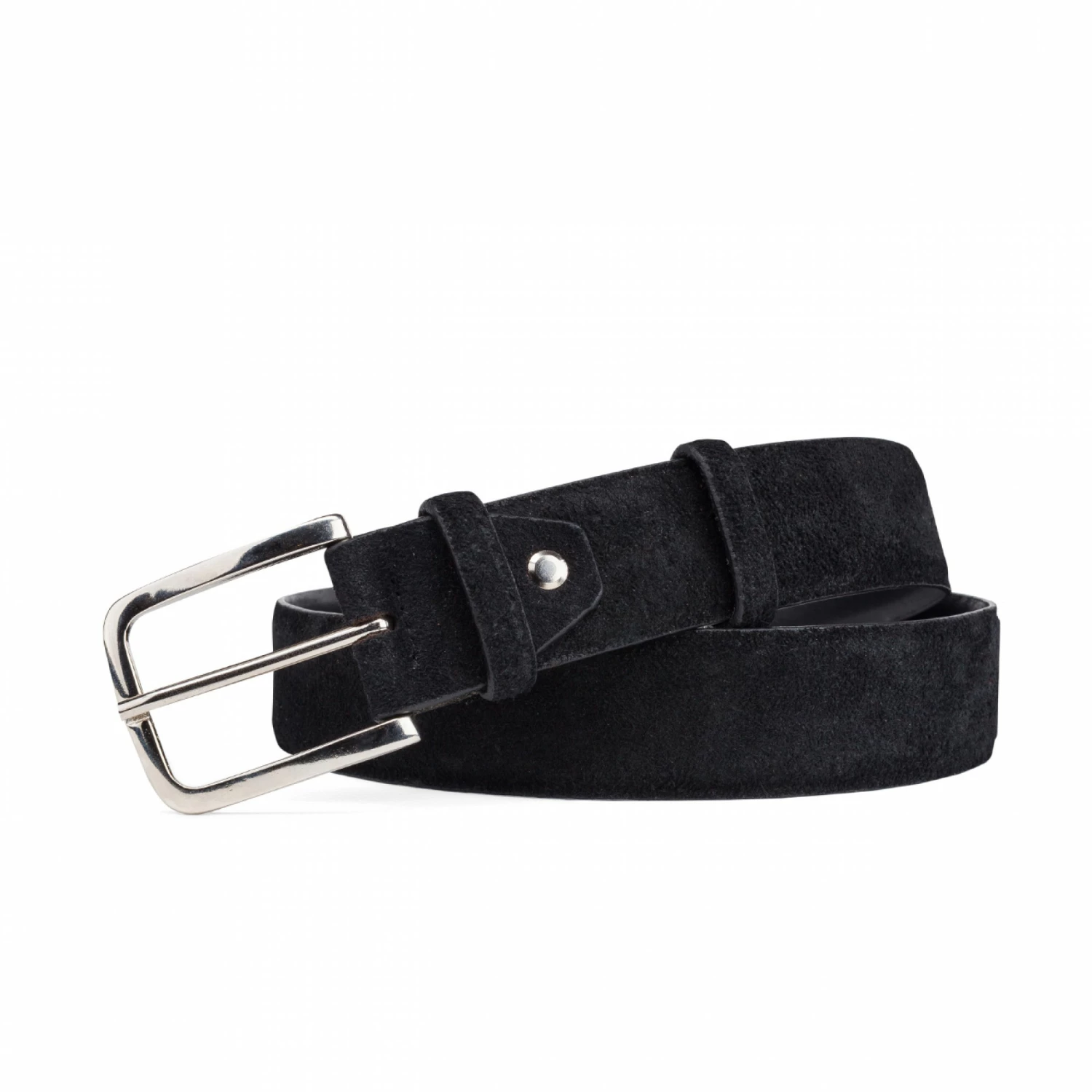 Handcrafted belt in velvety black suede, inner lining in soft leather and silver square buckle.