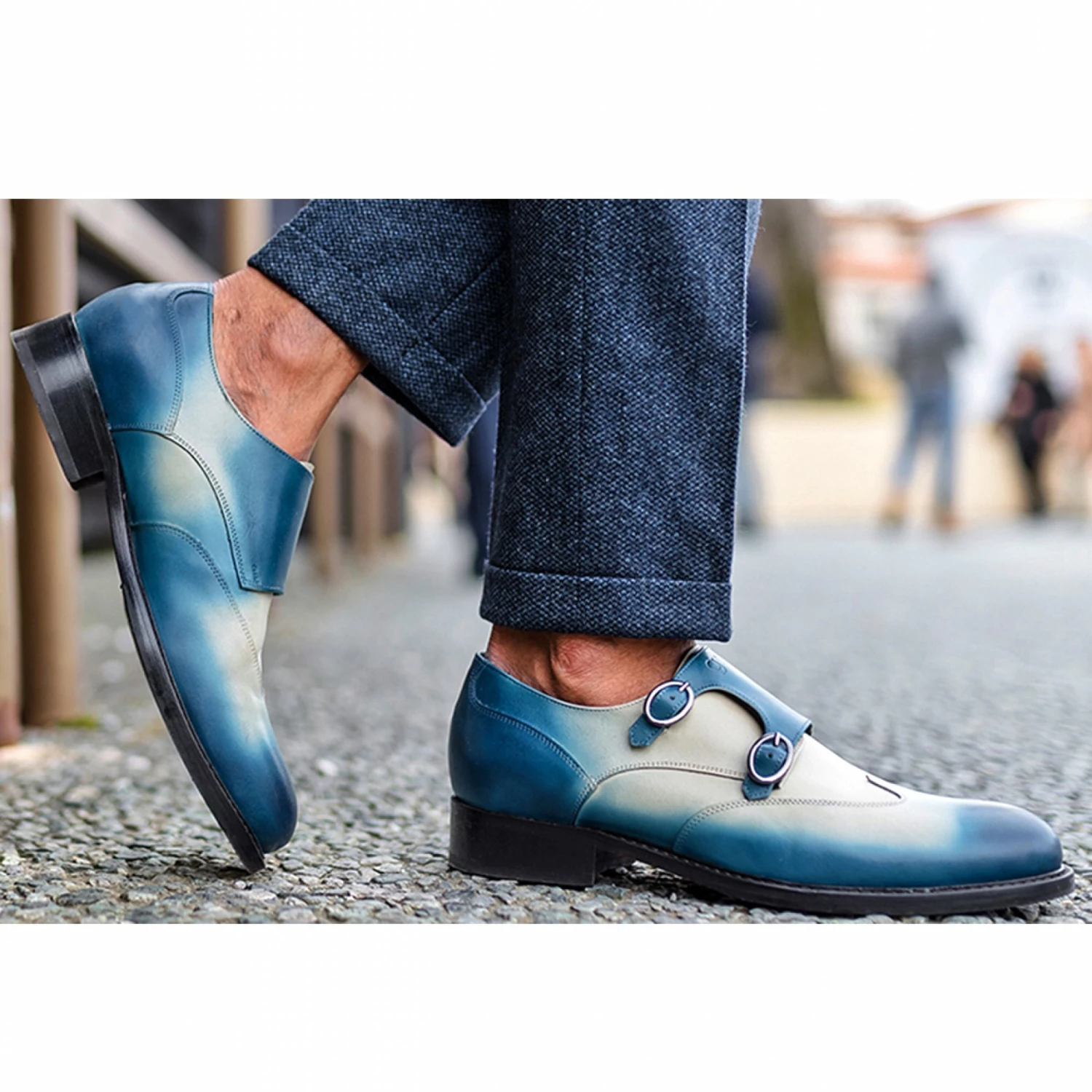 When craftsmanship is art: sophisticated elevator double buckle shoe, characterized by the distinctive coloration of the upper, obtained through the “Patina” process. A meticolous technique which enriches the upper in full grain leather, vegetable tanned, with unique and harmonic reflections by manually dabbing a sponge on top of it.