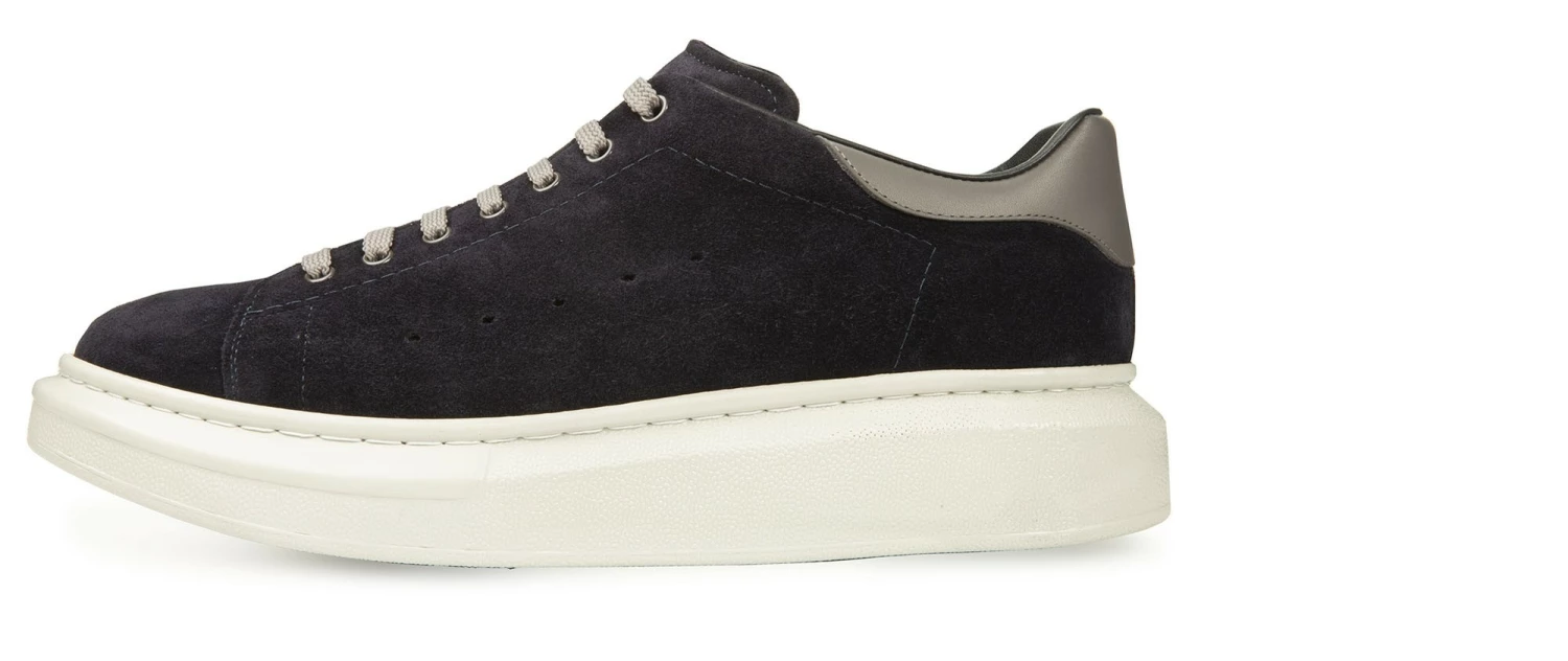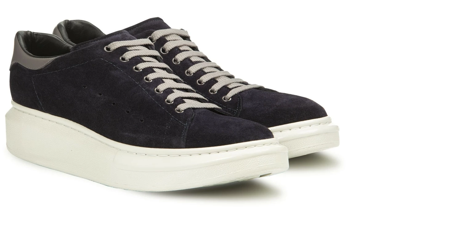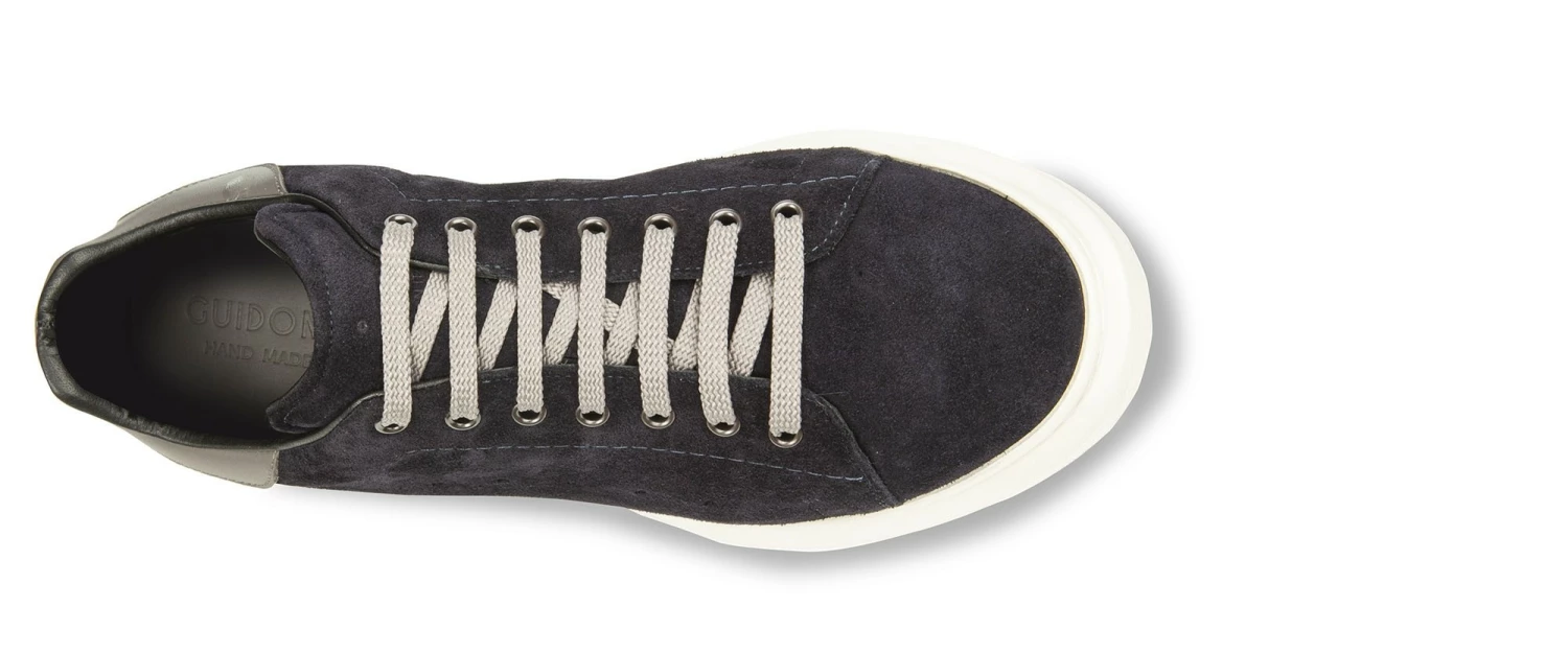 GuidoMaggi’s elevated sneakers are dynamic and discreet, elegant and refined. The sports shoes from the Lecce-based fashion house go further, redefining the boundaries of urban style. The upper, masterfully handcrafted by the brand’s skilled artisans, is in soft navy blue suede, while the spur is in gray full-grain leather. The super-lightweight sole is made of light beige rubber. Ideal for sporty chic looks, it adds up to 3.1″of extra height. Handcrafted in Italy.