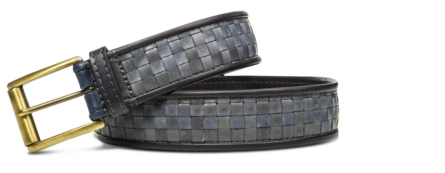 The woven belt signed by GuidoMaggi is an expression of style and character: immersed in blue, it is the accessory that will make the difference in your seasonal outfit. Characterised by a patina processing, with different shades, for a vintage effect that makes the belt genuinely unique. 100% made in Italy.
