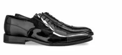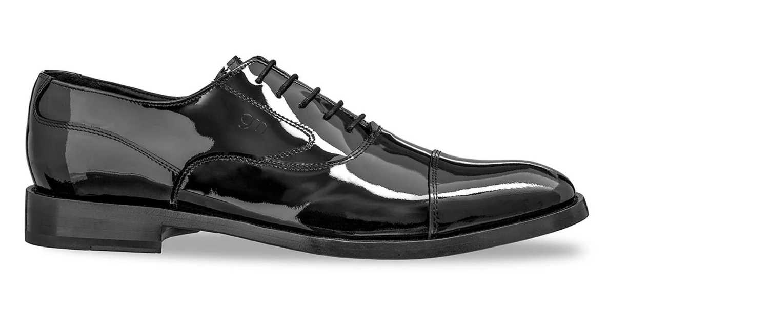 Classic elevator Oxford shoes with upper in black patent leather and tone on tone sole in real leather with anti-slip rubber.