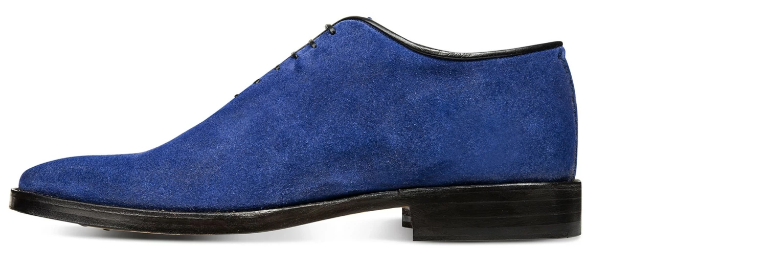 The exclusive elevator shoe is handcrafted using a single piece of leather without seams (wholecut). The shoe’s upper is in blue suede with Goodyear processing, has waxed laces and a handreconstructed Italian leather sole and adds 3.1 inches of extra height. A refined model with great character, suitable for casual-chic outfits of the season.