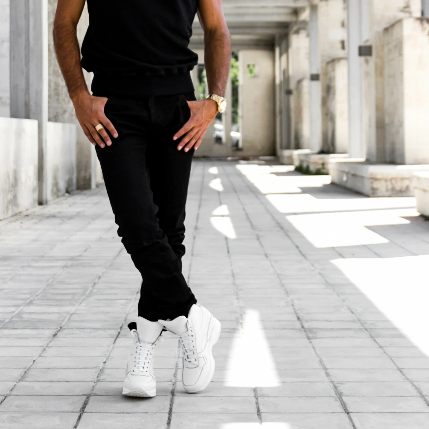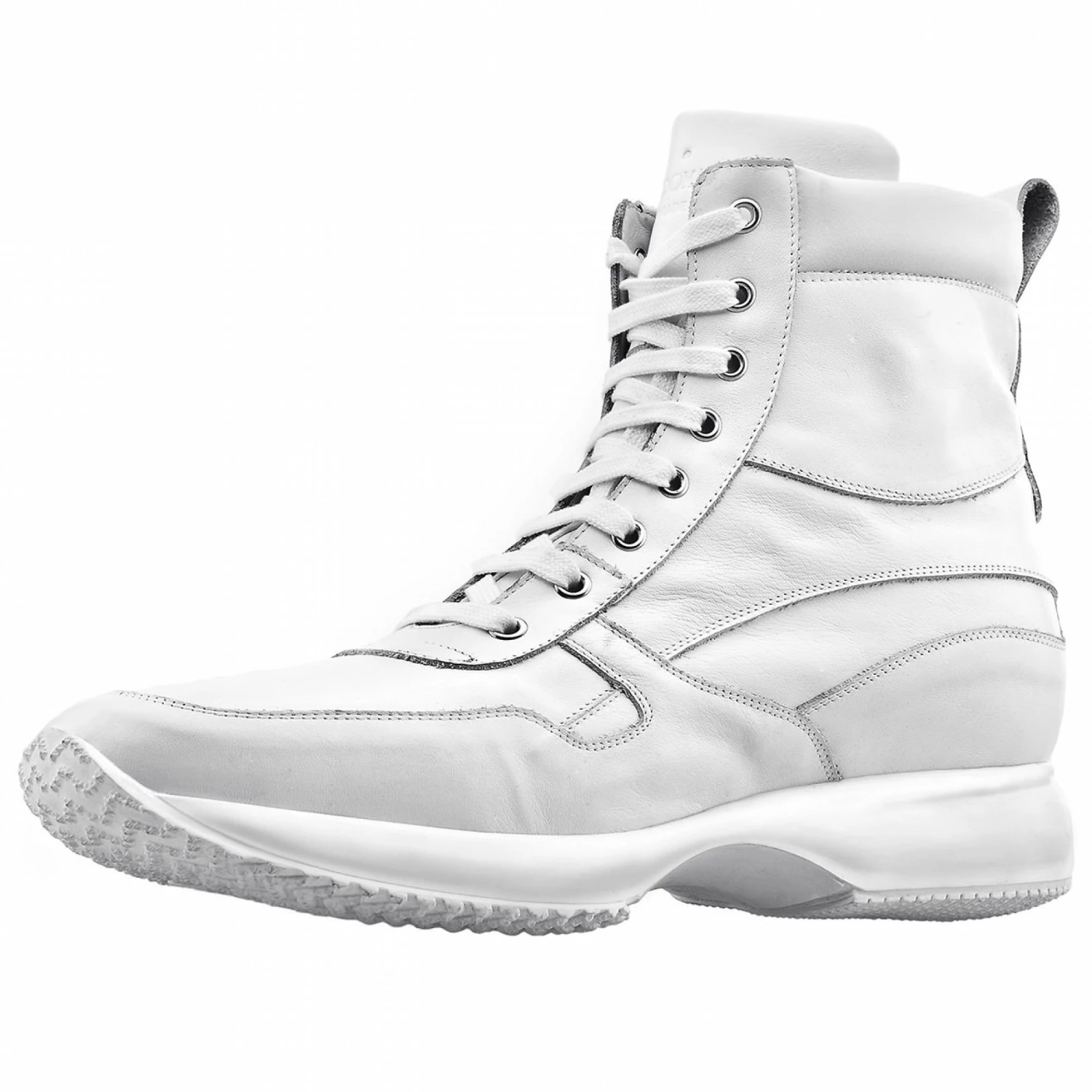 Upper in white full grain leather. Lining in soft goatskin. Insole in genuine leather. Lightweight high quality rubber outsole anti-slip. Height increase: 2.4in(6cm), 2.75in(7cm), 3.1in(8cm) or 4 in(10cm). Hand Made in Italy