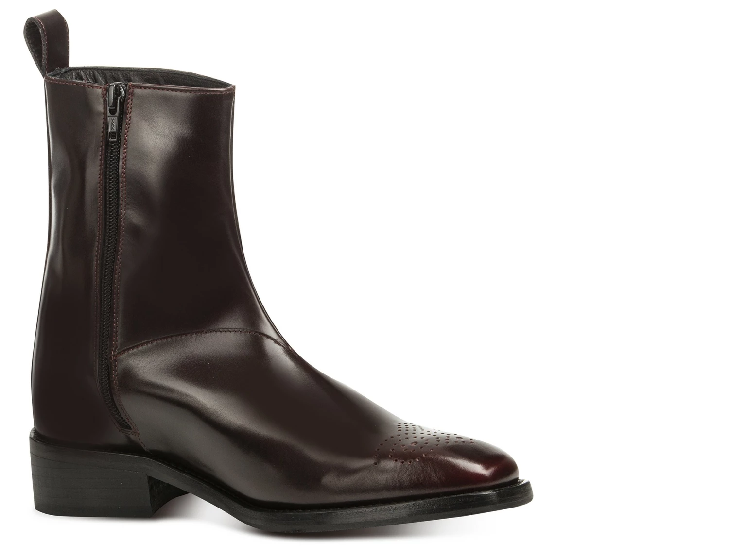 This elevator boot by GuidoMaggi is a masterpiece rigorously made in Italy, an example of manufacturing excellence with side zip and square toe, embellished with a sophisticated English brogue. The upper is in brushed calfskin proposed in an intense dark brown shade. 100% natural leather sole. Up to 4.0″ of extra height, with discretion and in the name of absolute comfort.