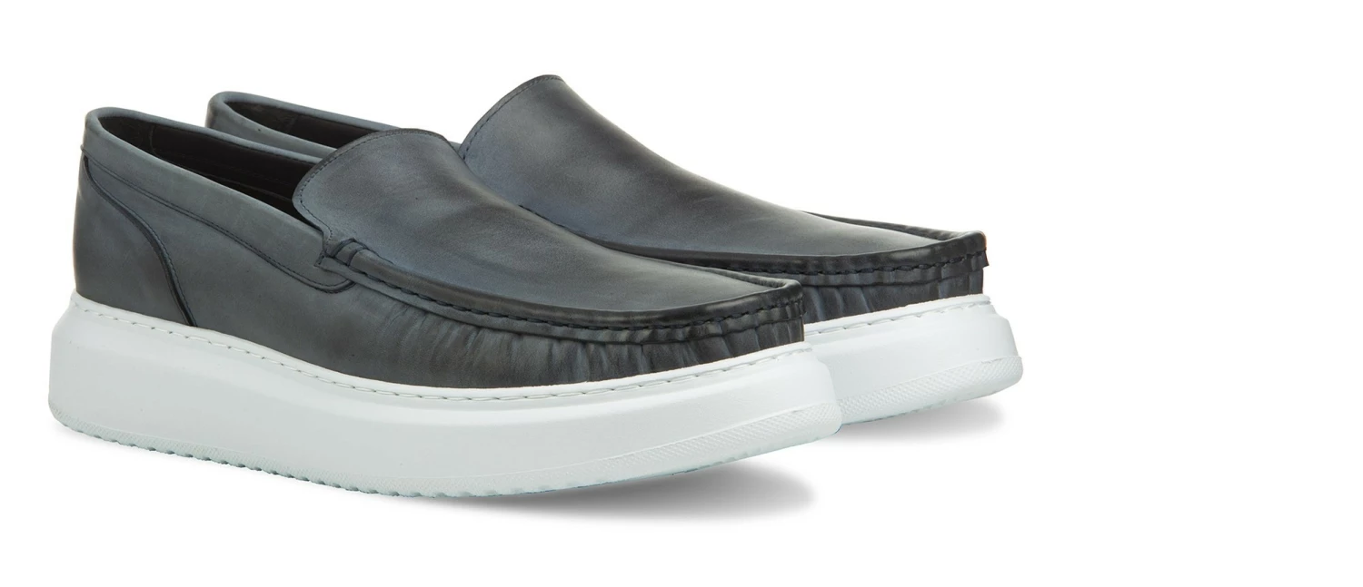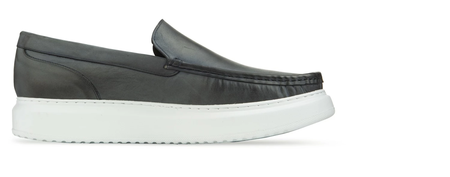 An arthouse hybrid that cannot be missing in your summer wardrobe. The latest GuidoMaggi elevator shoe is an avant-garde mix that blends a moccasin and sports shoe. The sole is in super-light natural rubber, while the upper is in soft grey leather strictly hand-buffed. The lifting system, comfortable and discreet, adds up to 2.56″ of extra height. Handmade in Italy.