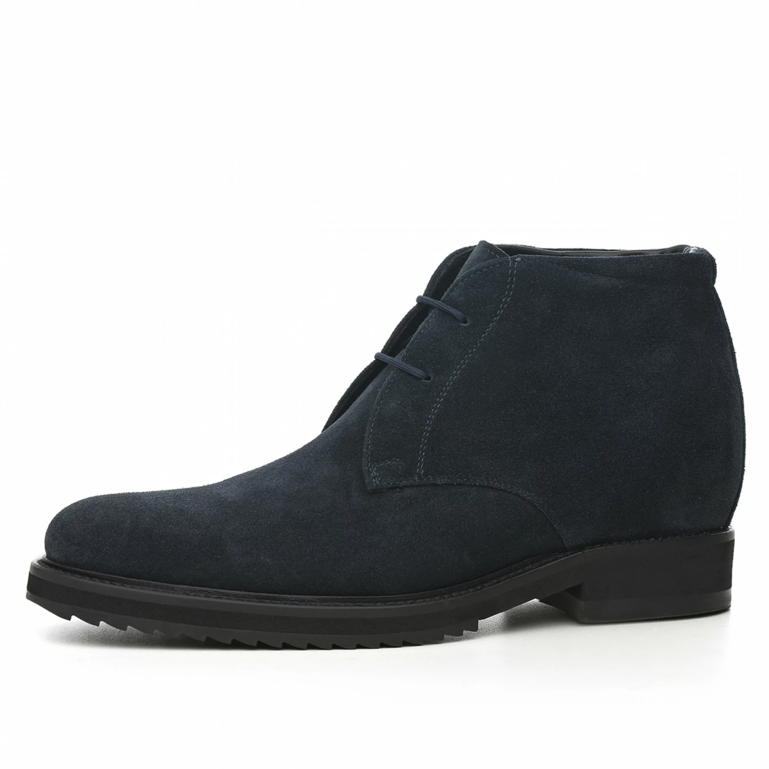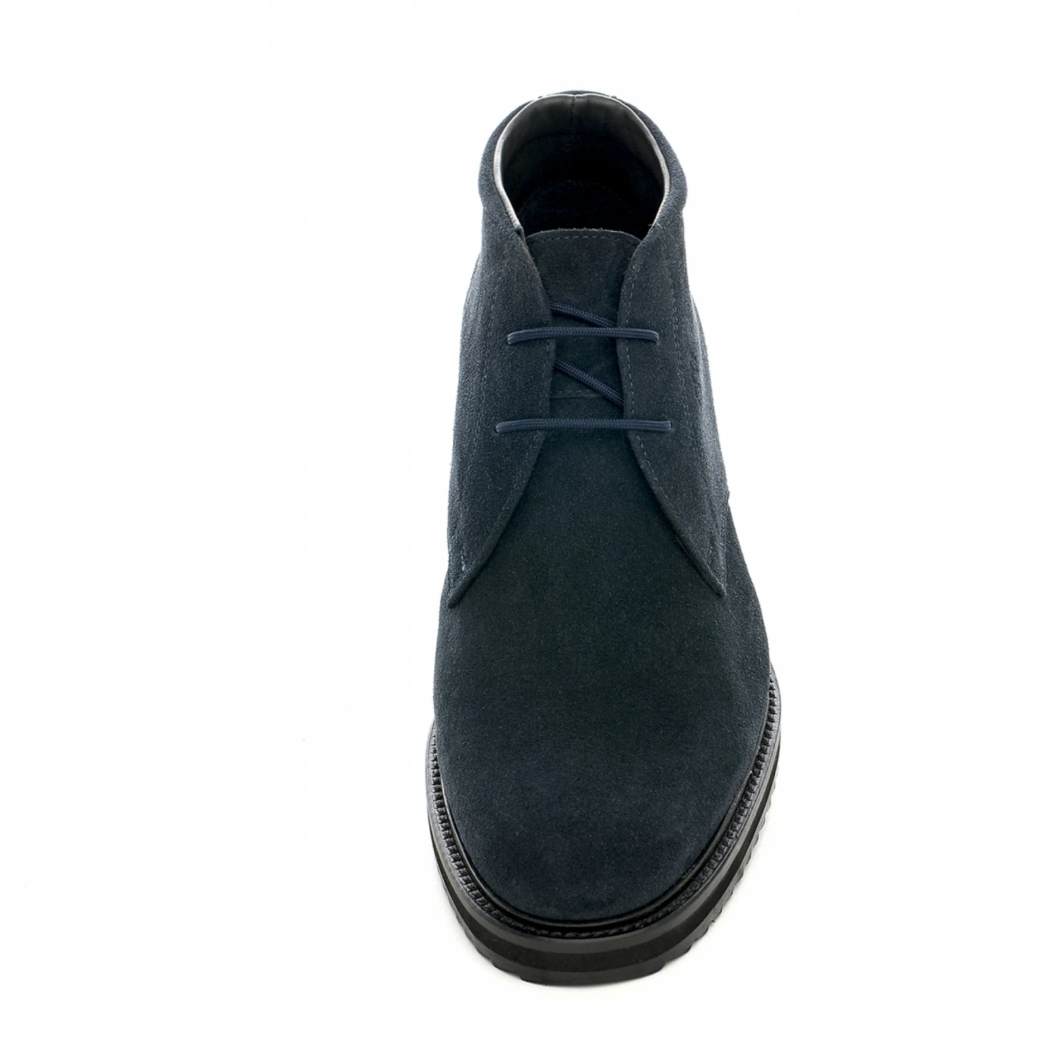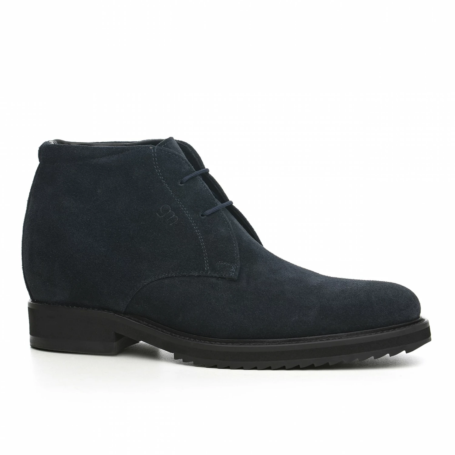 Handmade elevated ankle boots with upper in dark blue suede calf leather and ultra light rubber sole. Featuring a classic design, this shoe is ideal to match with slim-fit trousers, jeans and a blazer. The GM team of artisans and designers allows the possibility to customize the shoe in every detail to make it even more unique.