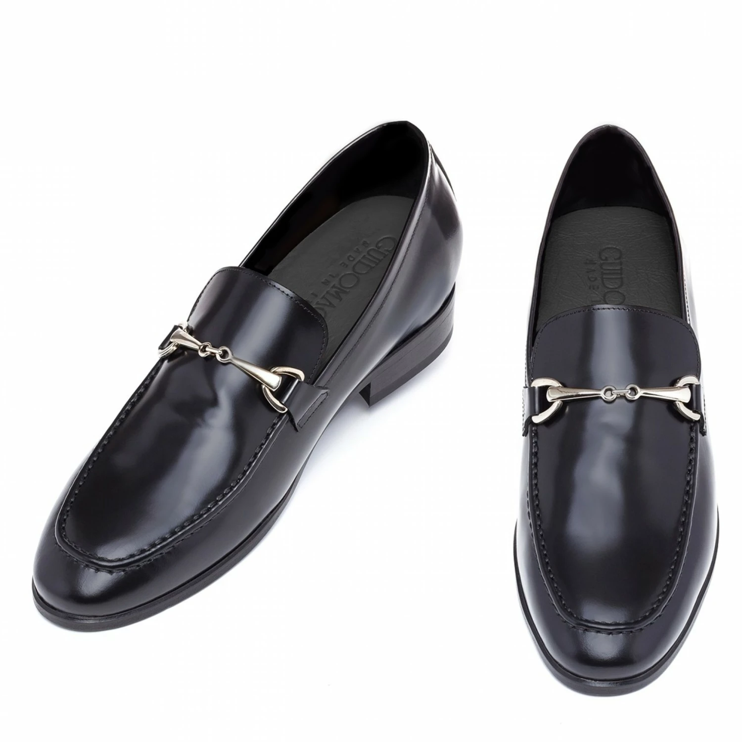 Add 2.6 inches to your height thanks to this elegant elevator loafer handcrafted in Italy with upper in black brushed calfskin.