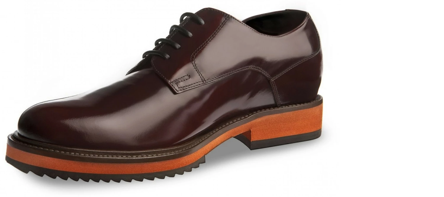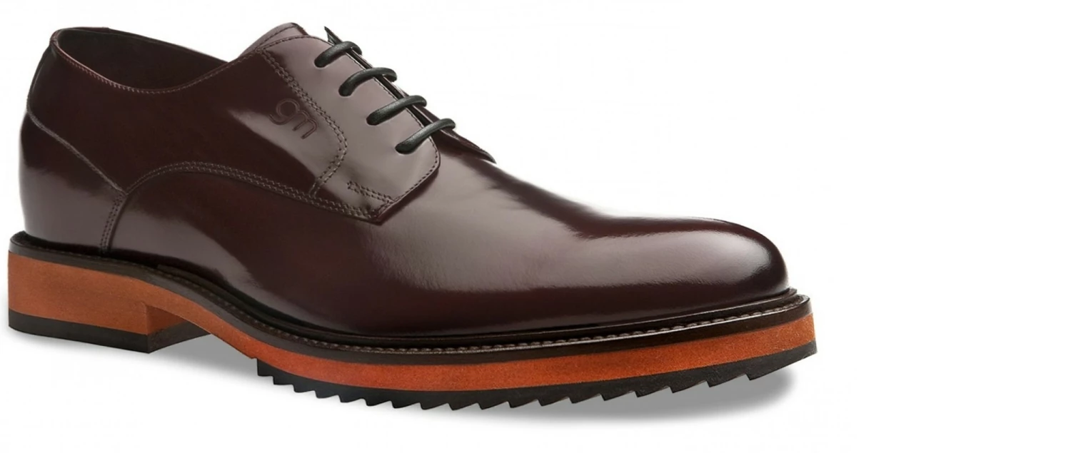 Upper in shiny bordeaux calfskin. Lining in soft goatskin. Insole and midsole in genuine leather. Cotton waxed shoe laces. Handcrafted, anti-slip rubber sole. Height increase: 2.4 in(6cm) or 2.75in(7cm) or 3.1in(8cm). Hand Made in Italy