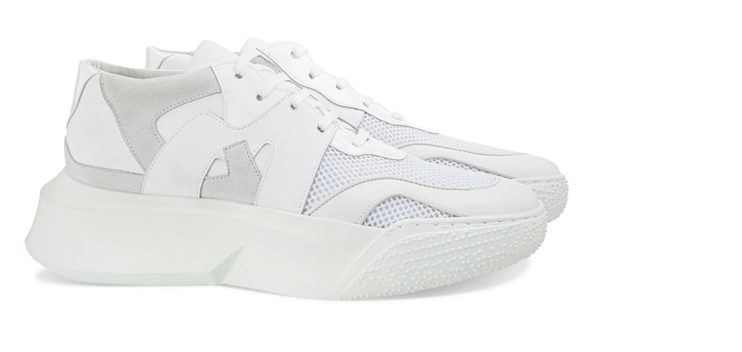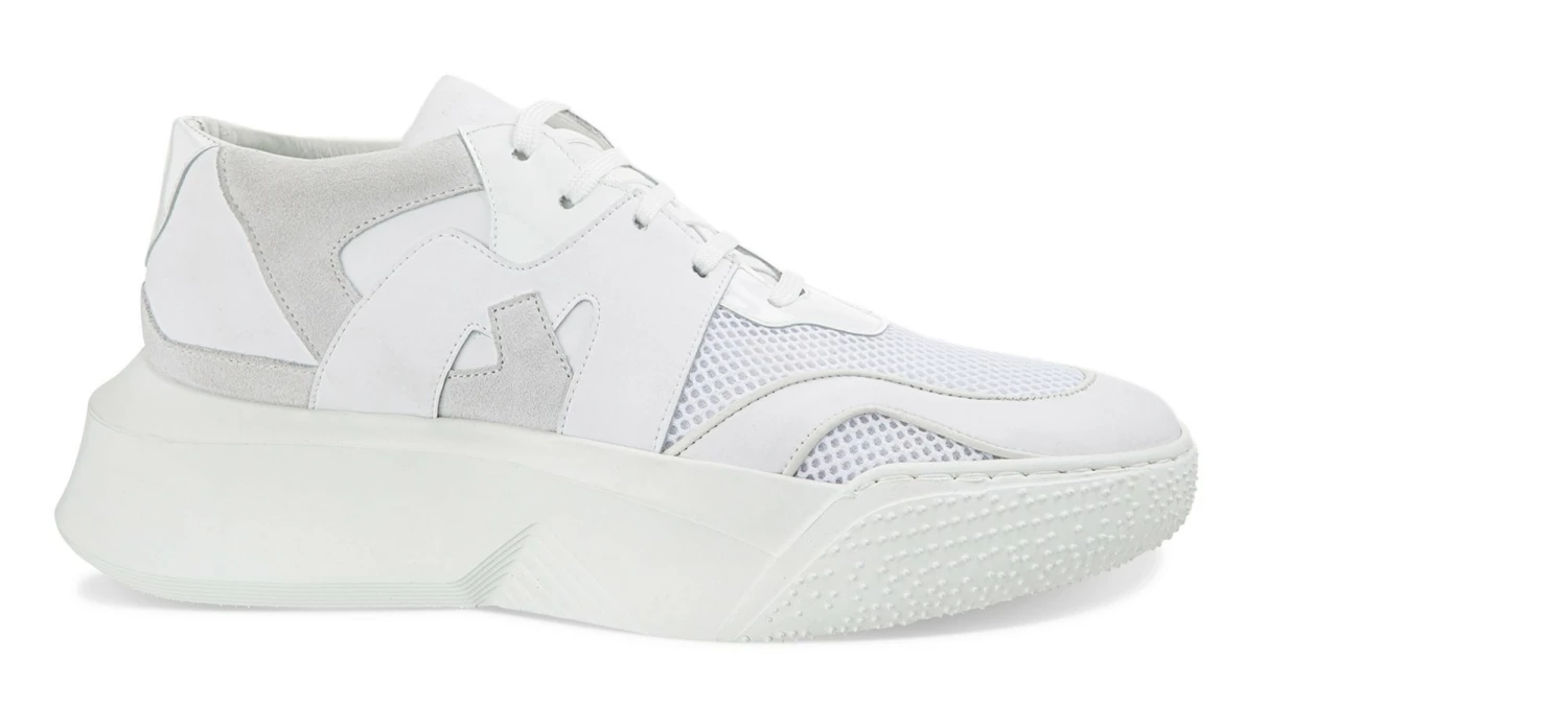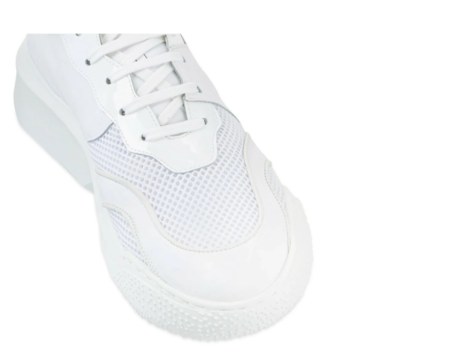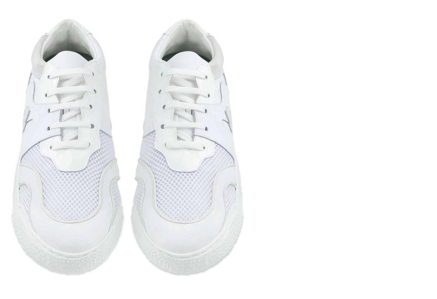 GuidoMaggi’s tribute to Jason William one of the greatest NBA basketball players of all time. White Chocolate is a chunky elevator sneaker with upper handcrafted from 4 white fine materials: suede, breathable perforated fabric, patent leather and rubberized calfskin. The sole is in tone-on-tone super light natural rubber.